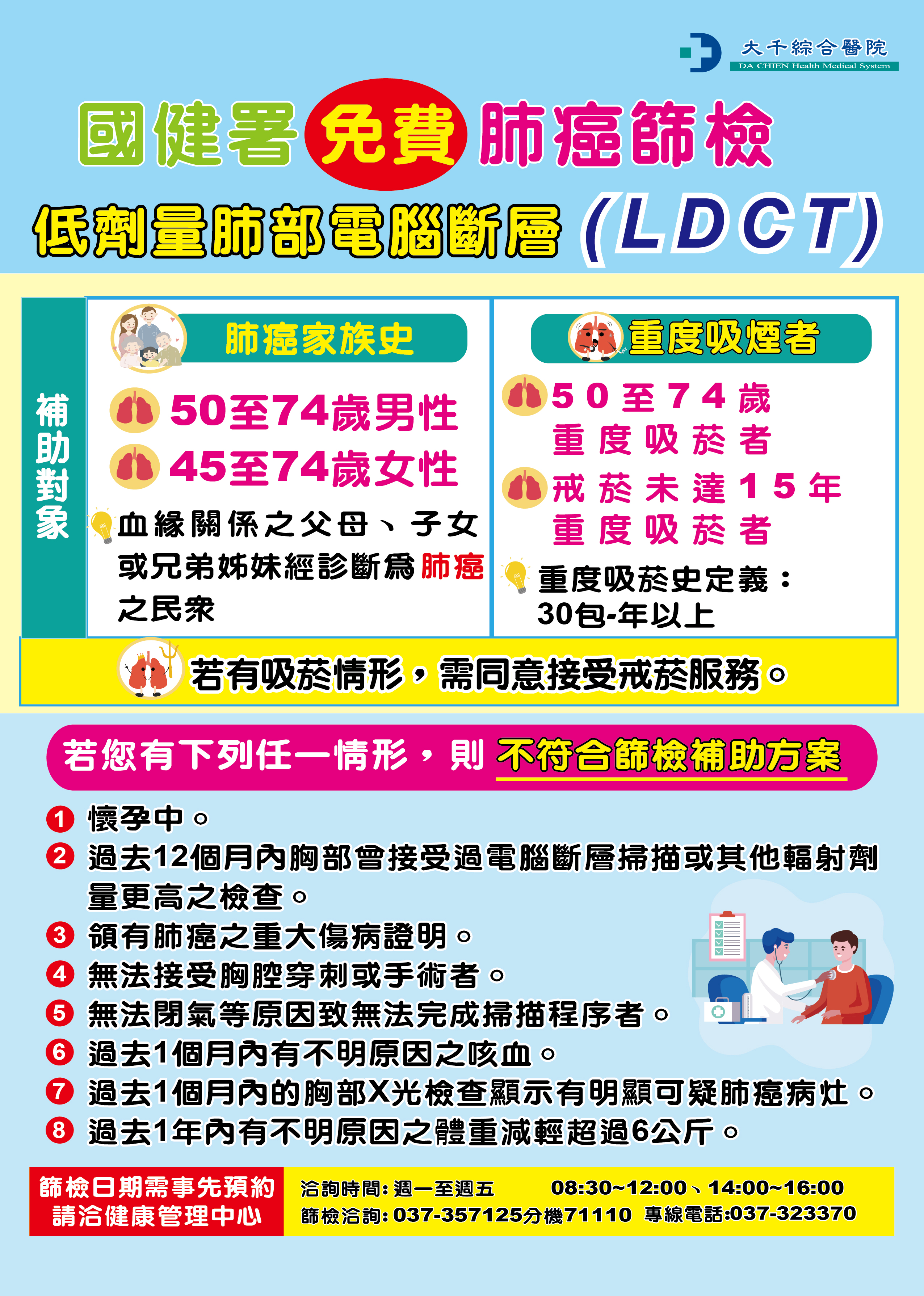 國健署免費癌篩-低劑量肺部電腦斷層(LDCT)