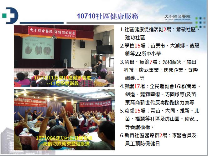 活動成果 - 10710社區醫療保健活動成果