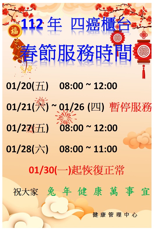 活動預告 - 2023年春節暫停服務公告