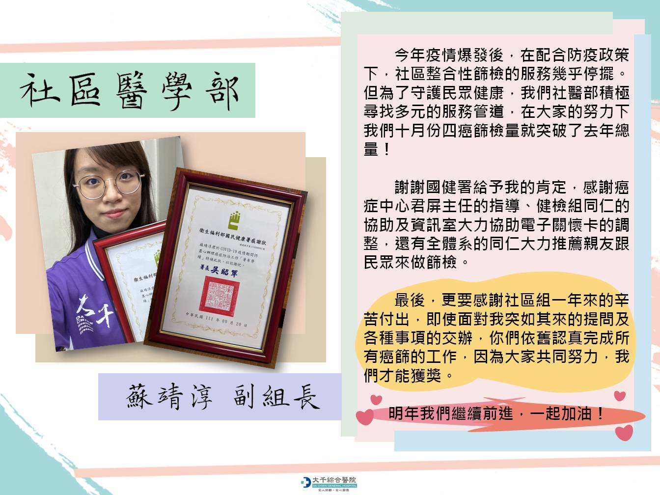 榮譽事蹟 - ~~111年度國健署感謝狀~~