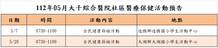 活動預告 - 112年5月整合性篩檢活動預告報你知