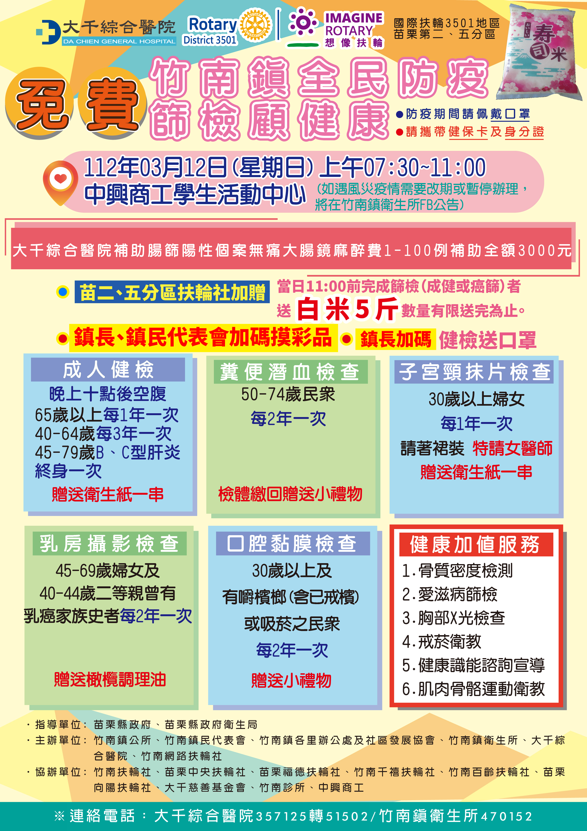 社區健康篩檢 - 112/03/12(日) ╴竹南鎮整合性篩檢活動
