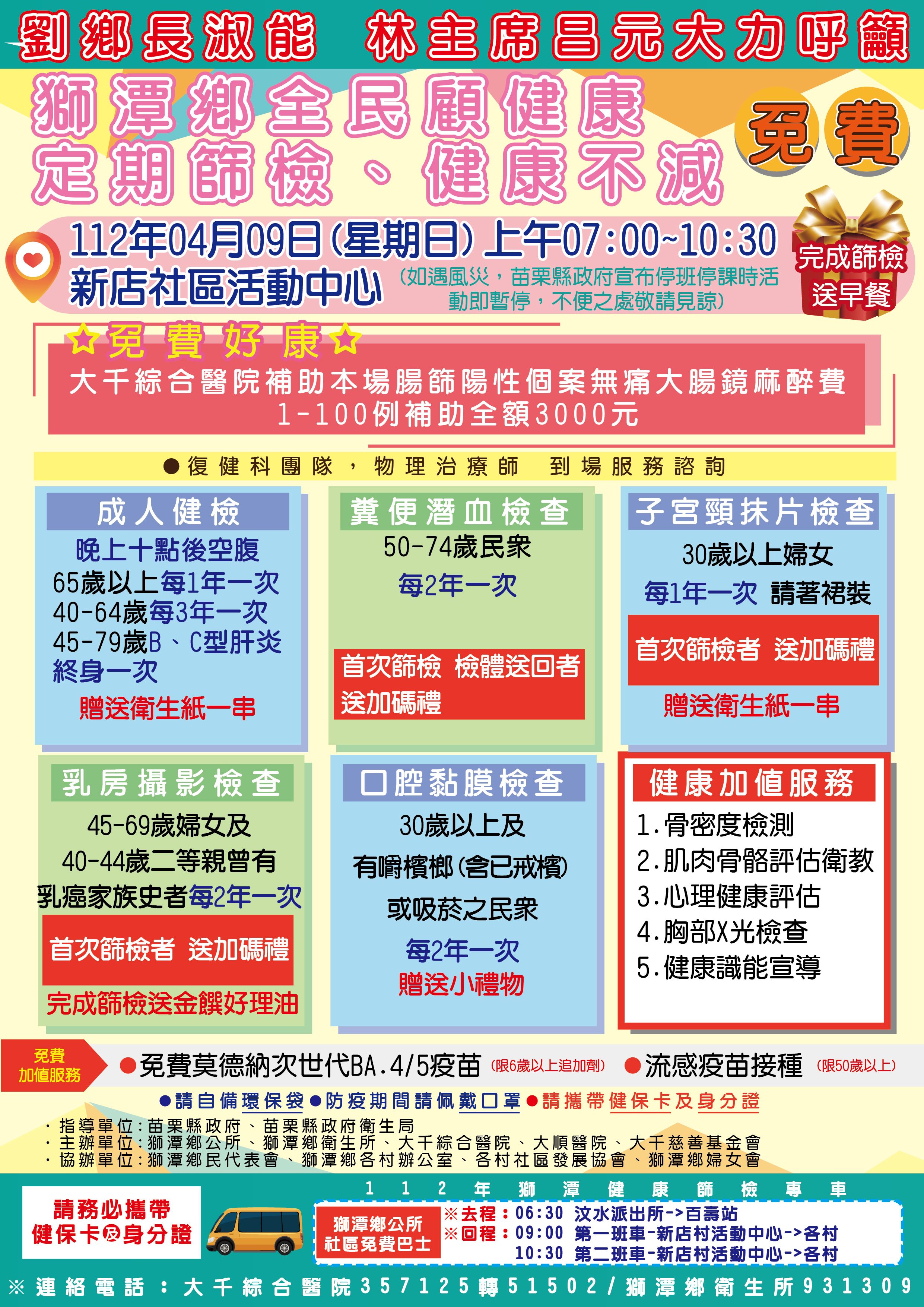 社區健康篩檢 - 112/04/09(日) ╴獅潭鄉整合性篩檢活動