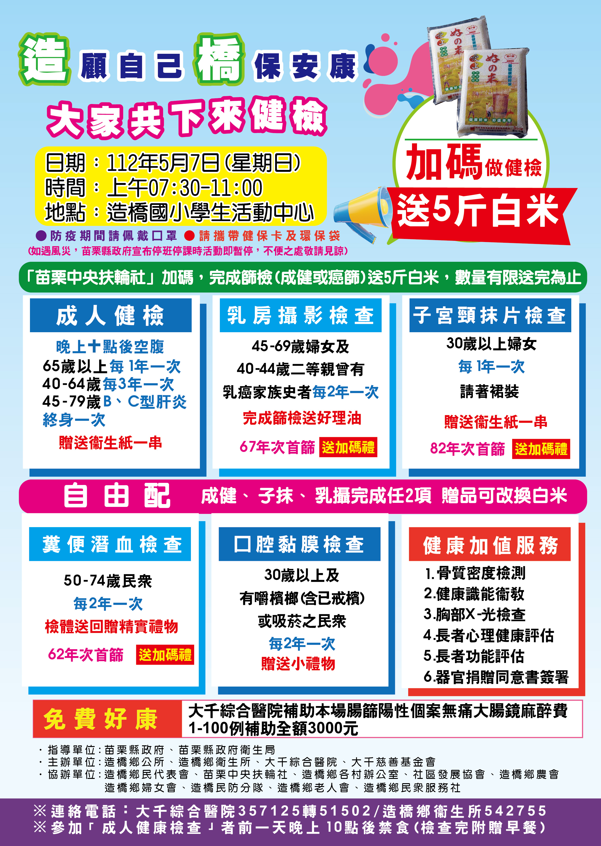 社區健康篩檢 - 112/05/07(日) ╴造橋鄉整合性篩檢活動