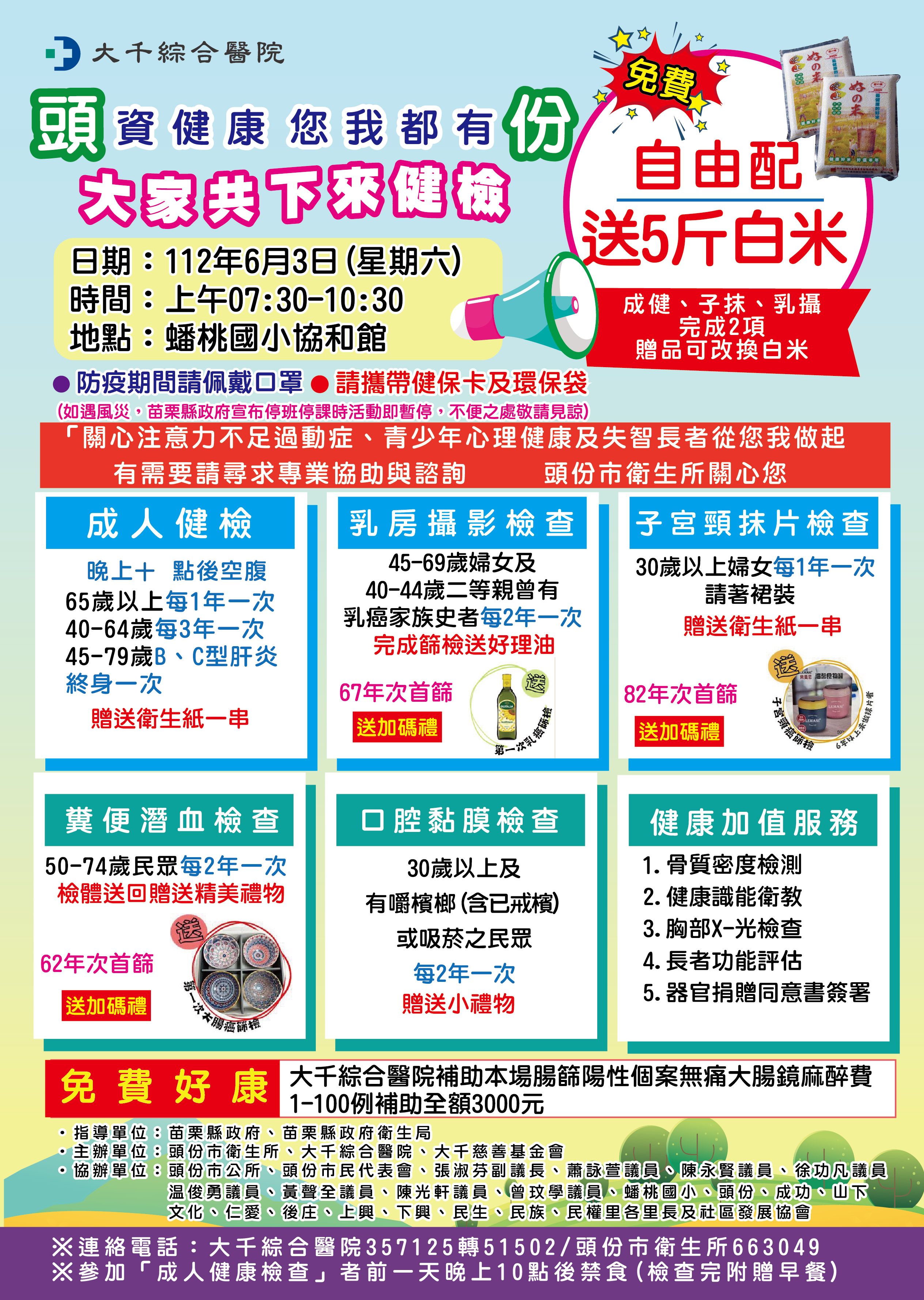 社區健康篩檢 - 112/06/03(六) ╴頭份市整合性篩檢活動