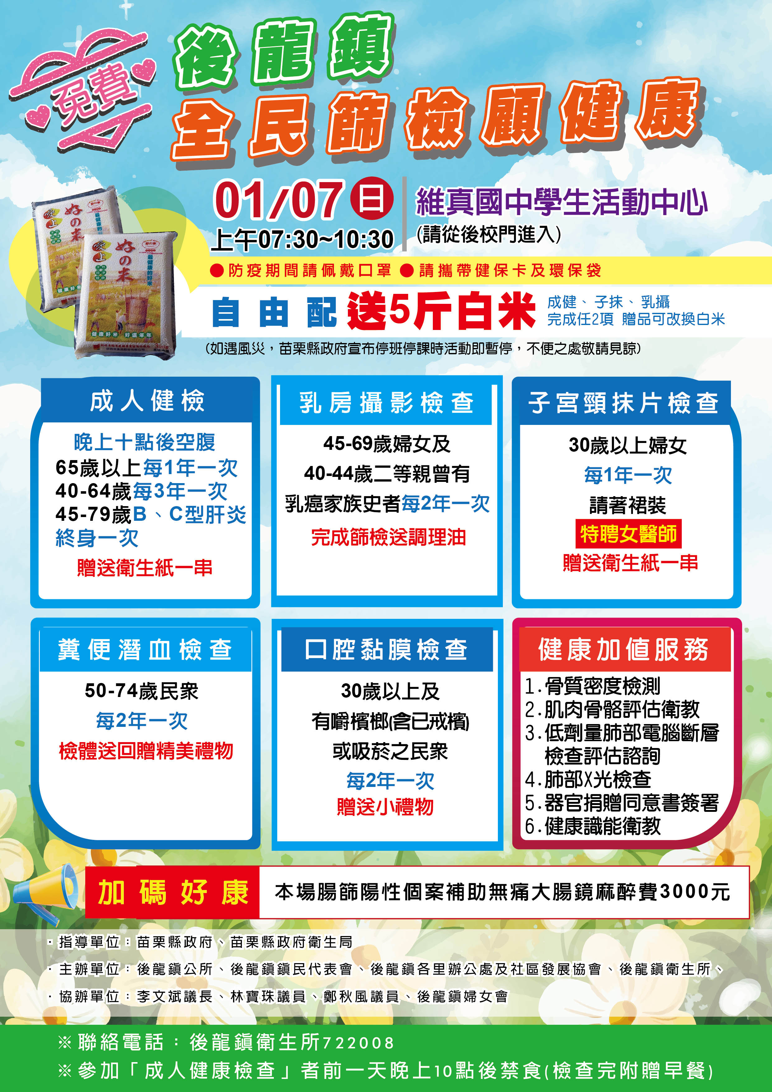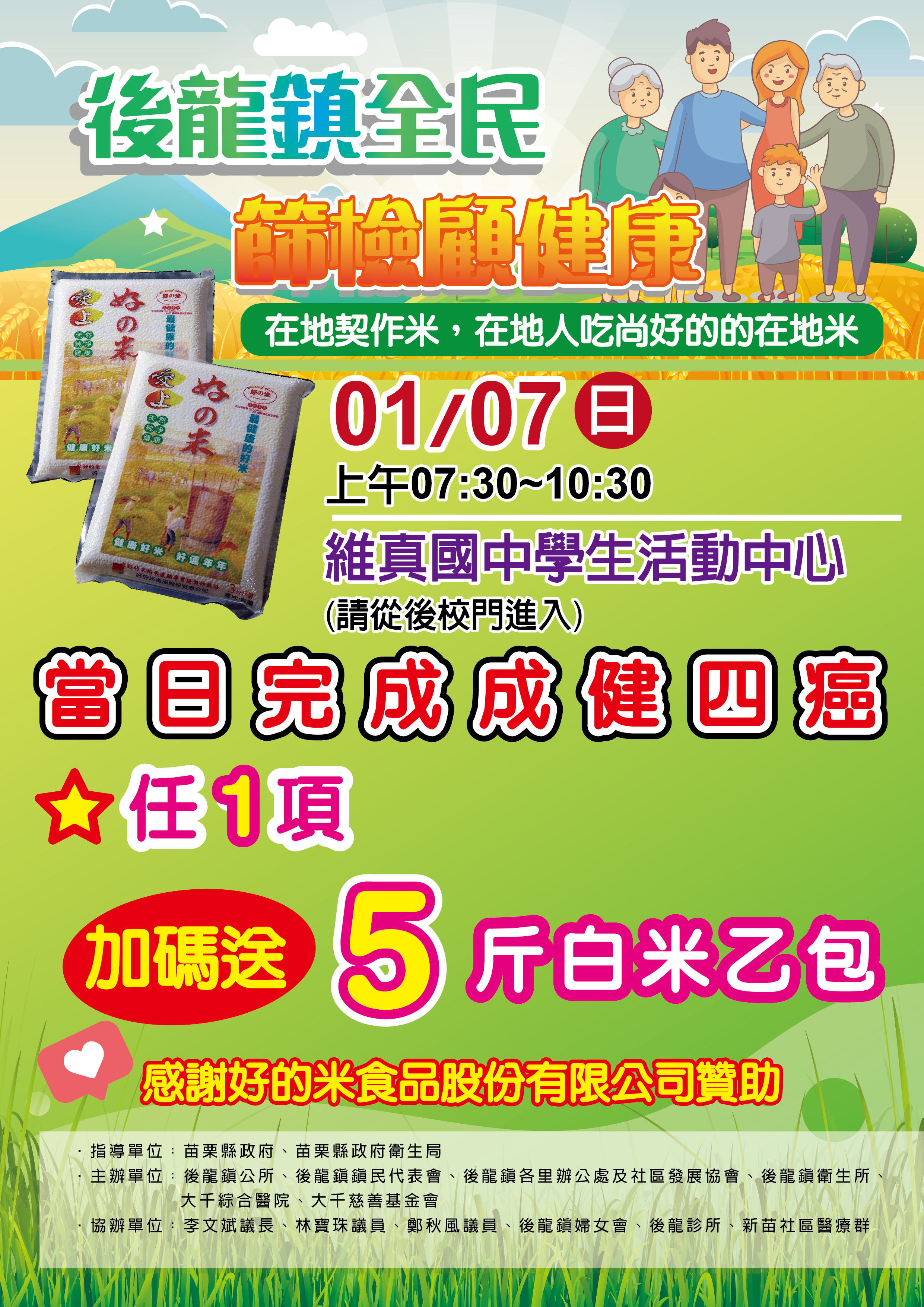 社區健康篩檢 - 113/01/07(日) ╴後龍鎮整合性篩檢活動