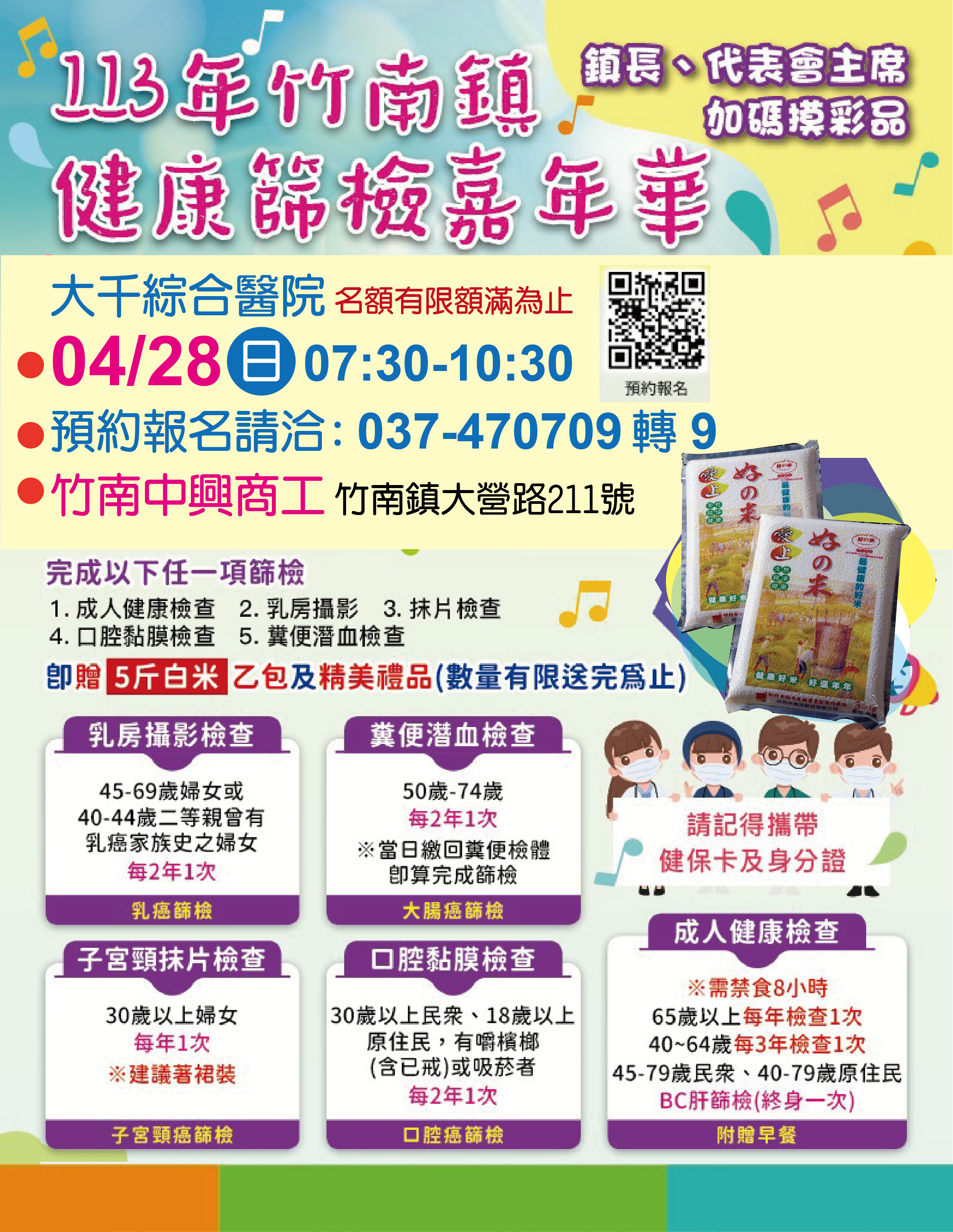 社區健康篩檢 - 113/04/28(日) ╴竹南鎮整合性篩檢活動