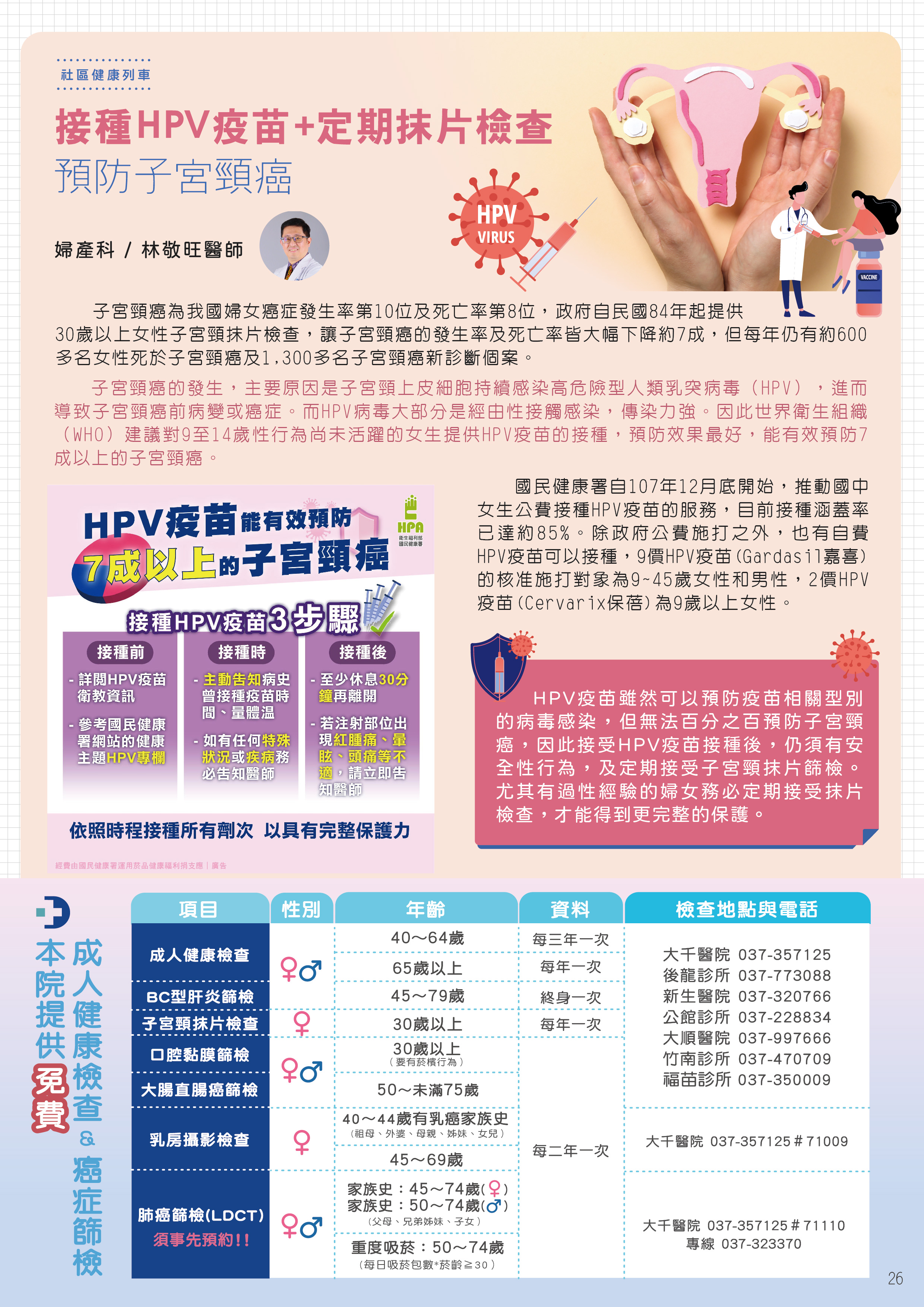 社區健康列車 - 接種HPV疫苗+定期抹片檢查 預防子宮頸癌