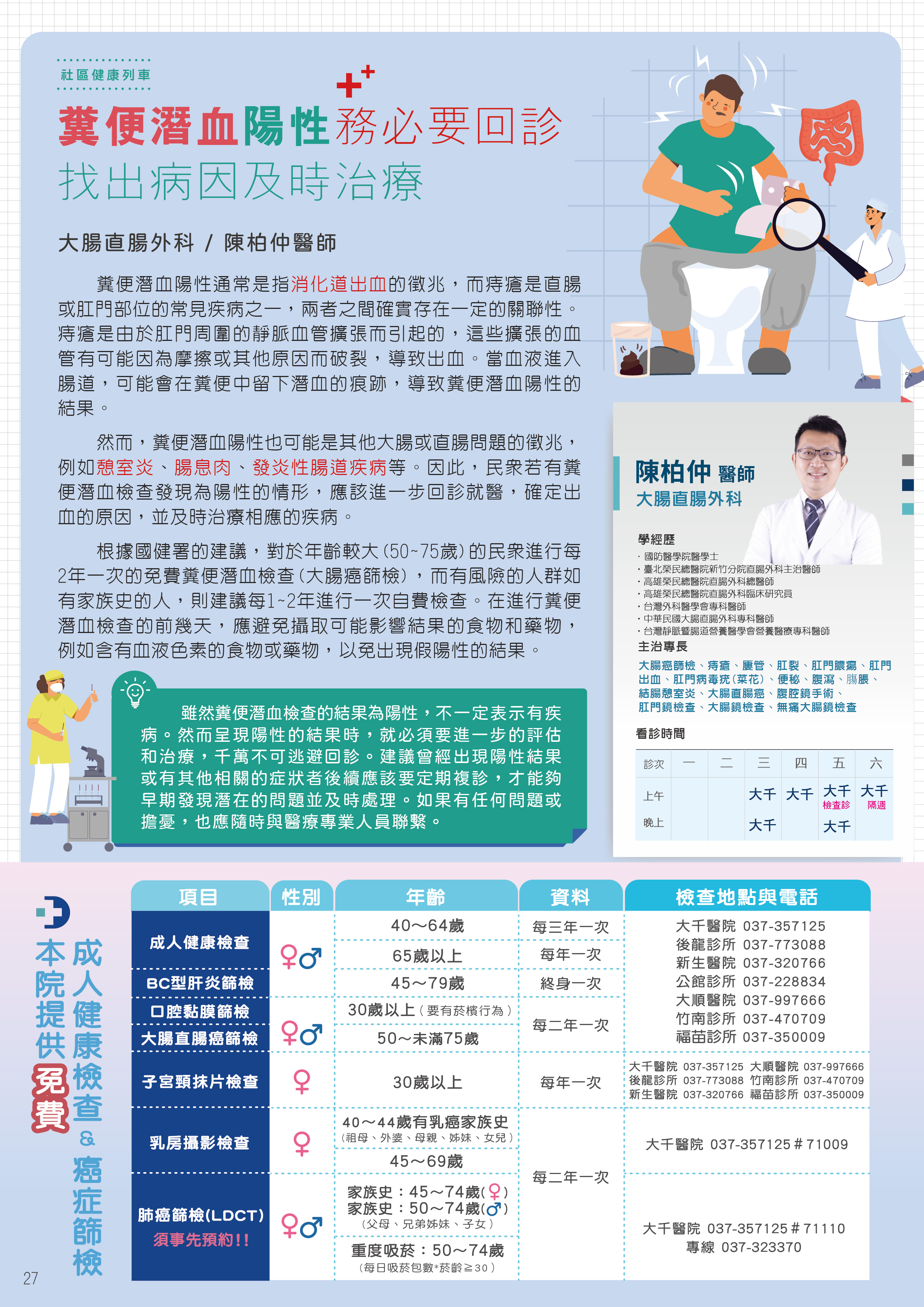 社區健康列車 - 糞便潛血陽性務必要回診,找出病因及時治療