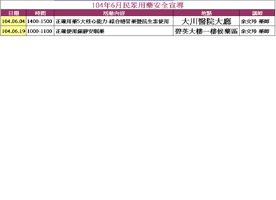 活動預告 - 104年6月民眾用藥安全宣導活動預告