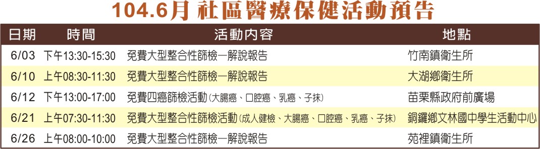 活動預告 - 10406 社區醫療保健活動預告