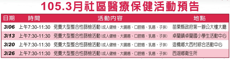 活動預告 - 10503 社區醫療保健活動預告