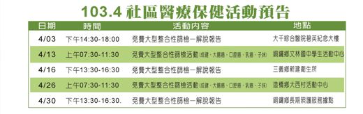 活動預告 - 10304 社區醫療保健活動預告