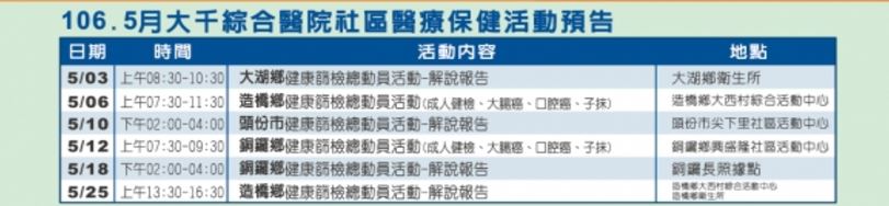 活動預告 - 10605社區醫療保健活動預告