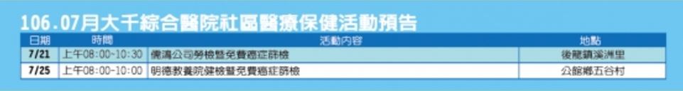 活動預告 - 10607社區醫療保健活動預告