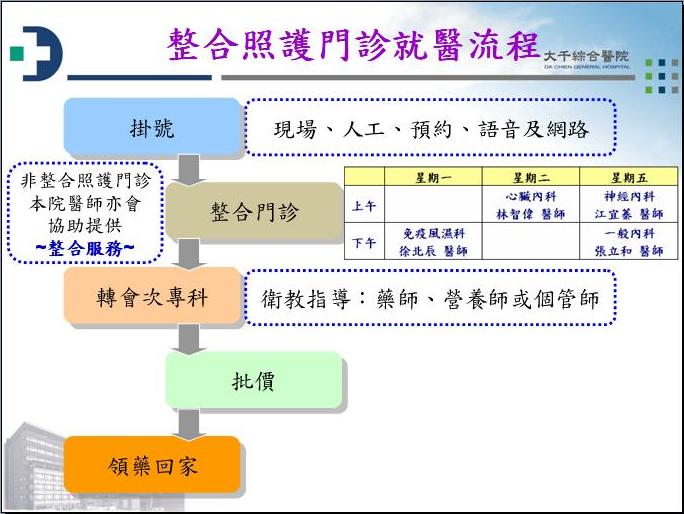 整合照護門診不僅讓就診民眾省時、省錢,更提升民眾用藥安全及完整的衛教資訊,歡迎民眾多加利用!