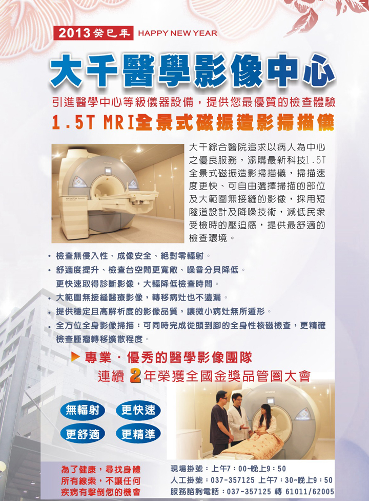 大千醫學影像中心~引進醫學中心等級儀器設備,提供您優質的檢查體驗