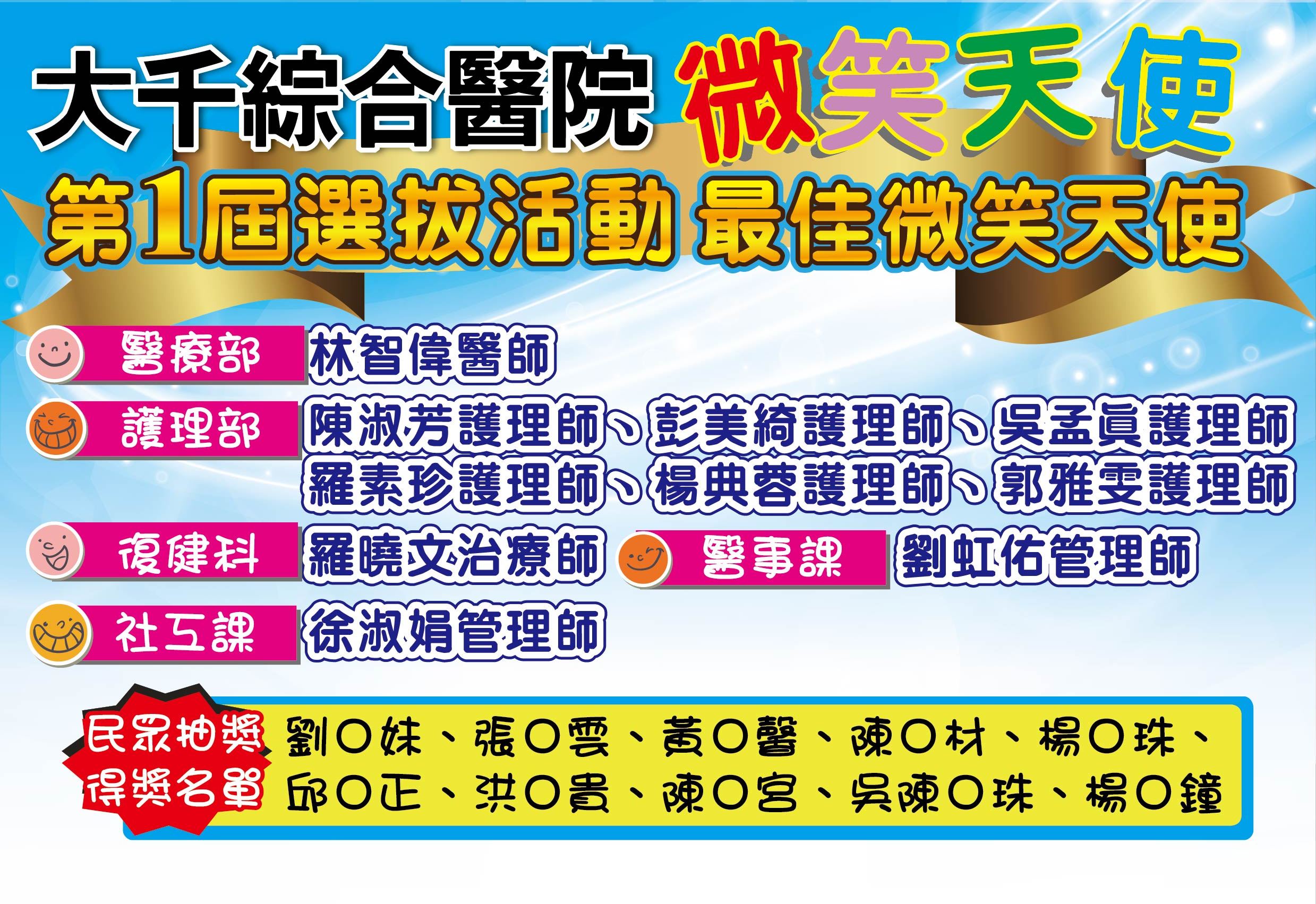 【大千健康醫療體系第一屆微笑天使選拔】 得獎名單