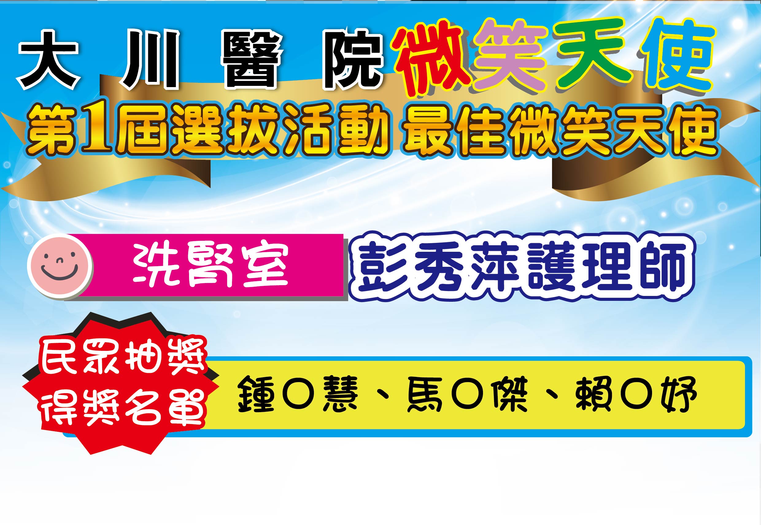 【大千健康醫療體系第一屆微笑天使選拔】 得獎名單公佈!!!
