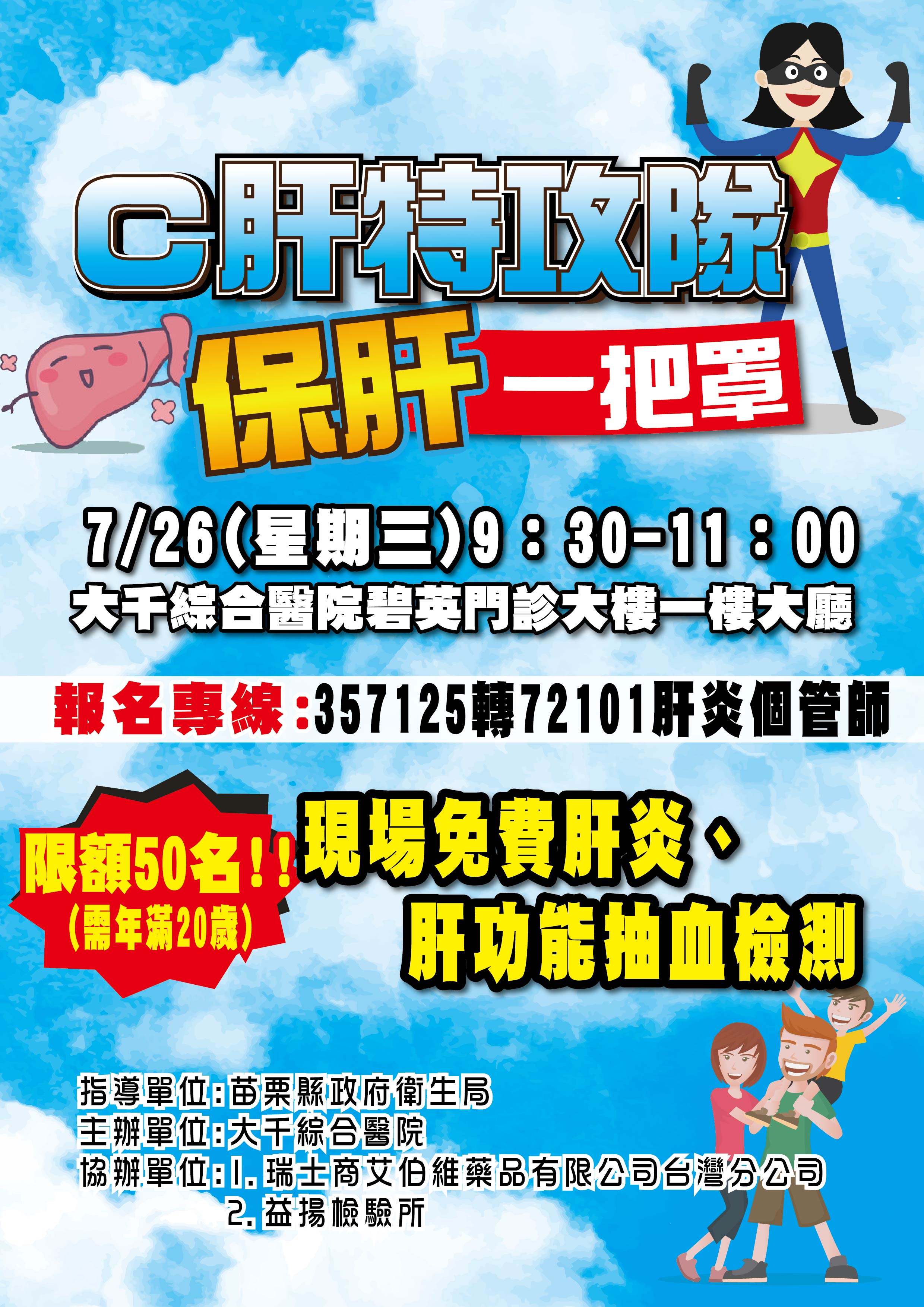 【限額50】7/26(三) 9:30-11:00邀請大家一起來參加【C肝特攻隊 保肝一把罩】活動