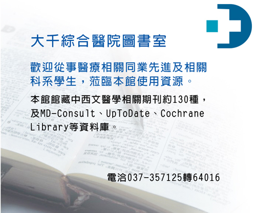 圖書室歡迎從事醫療相關同業先進及相關科系學生,蒞臨本館使用資源