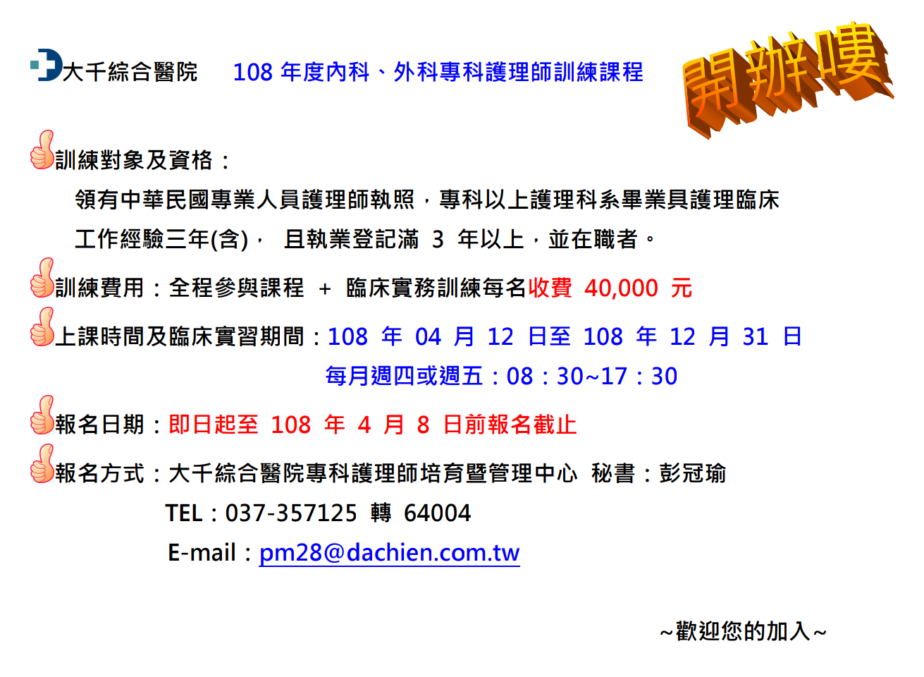 108年度【內科、外科專科護理師訓練課程】開辦囉!!!