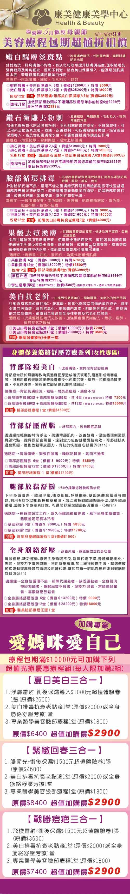 [康美健康美學中心] 溫馨慶5月‧歡度母親節-美容療程包期超值折扣價