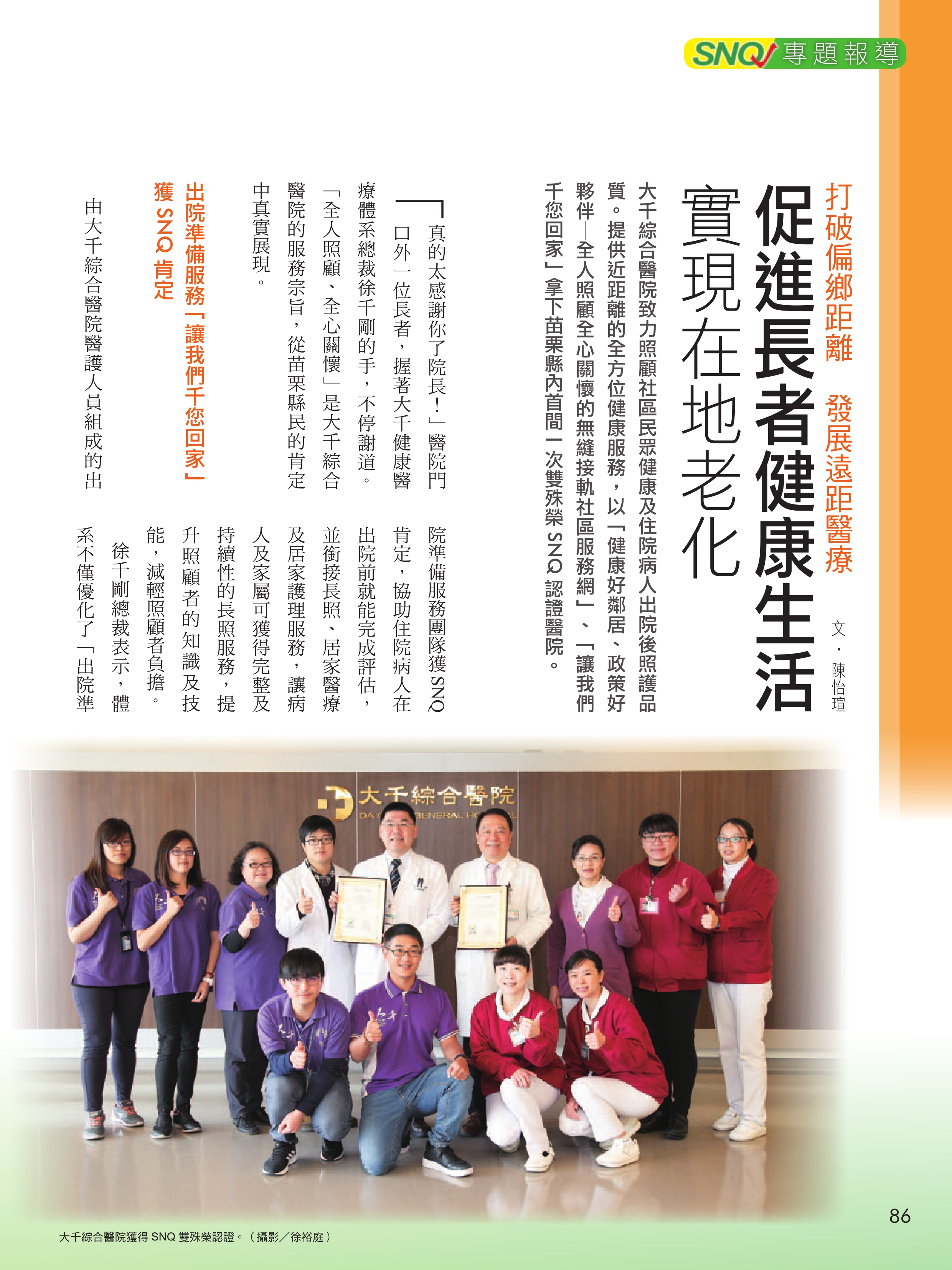 【卓越雜誌|SNQ國家品質標章專訪:促進長者健康生活 實現在地老化— 打破偏鄉距離 發展遠距醫療】