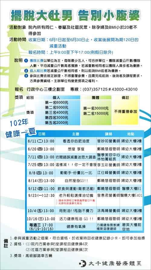 健康一夏「擺脫大肚男 告別小腹婆」減重活動6/3開跑囉~