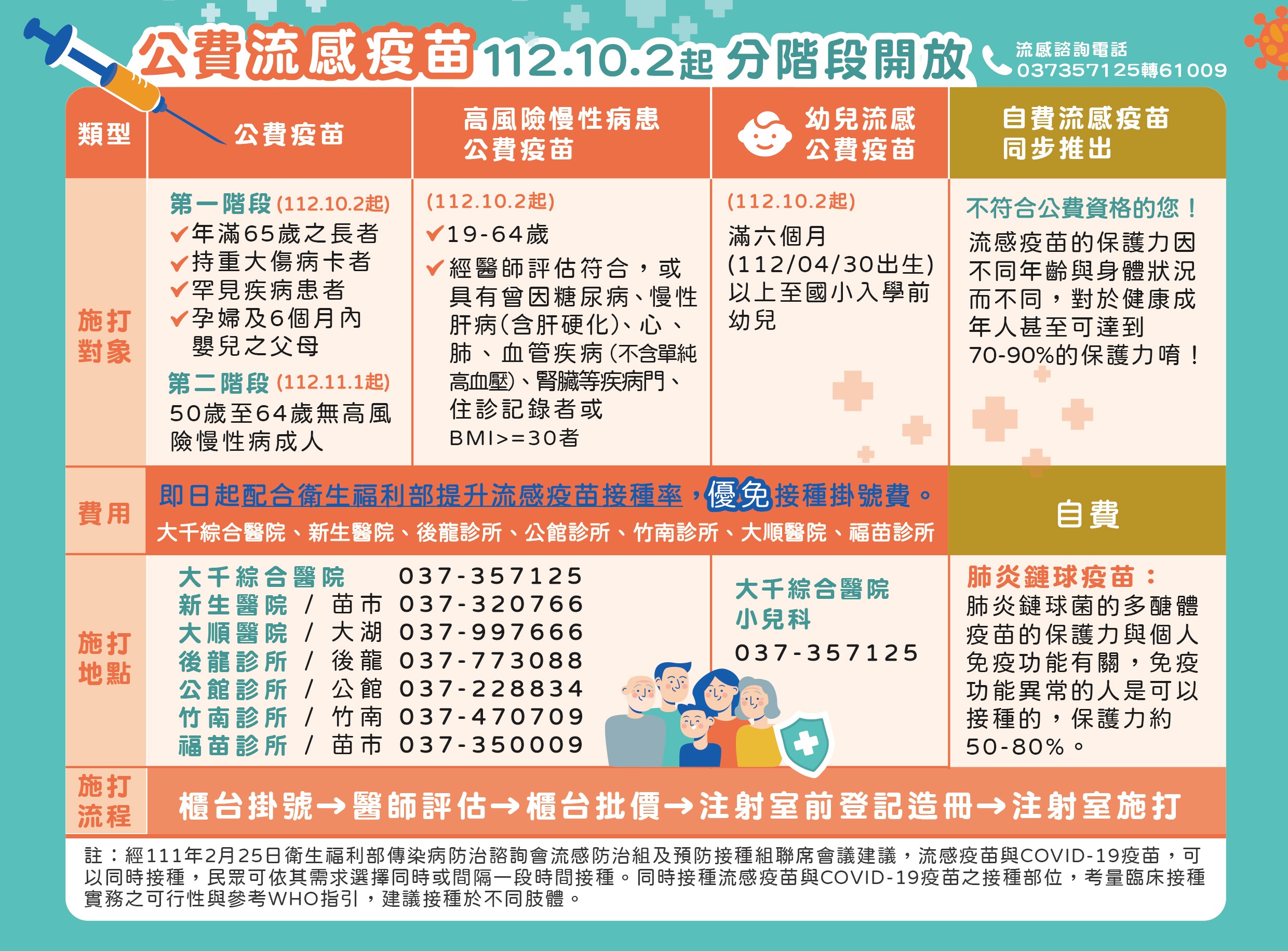 03/05(二)起,流感疫苗年滿3歲以上民眾可預約接種公費疫苗 !