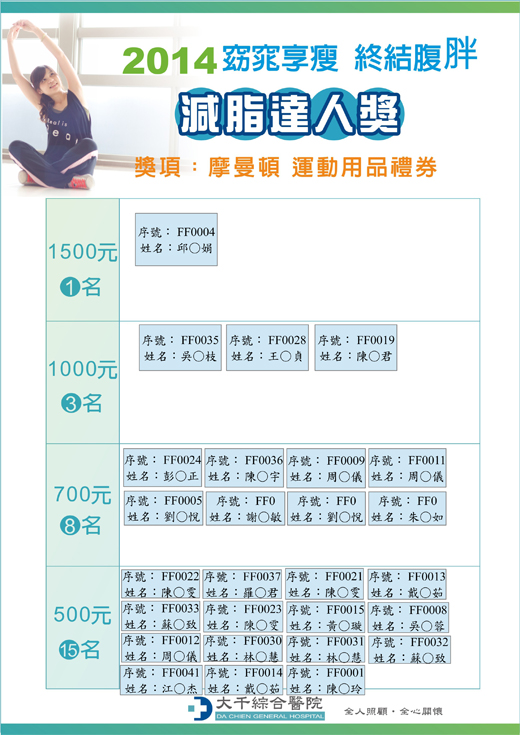 2014 窈窕享瘦 終結腹胖 減脂達人獎得獎名單