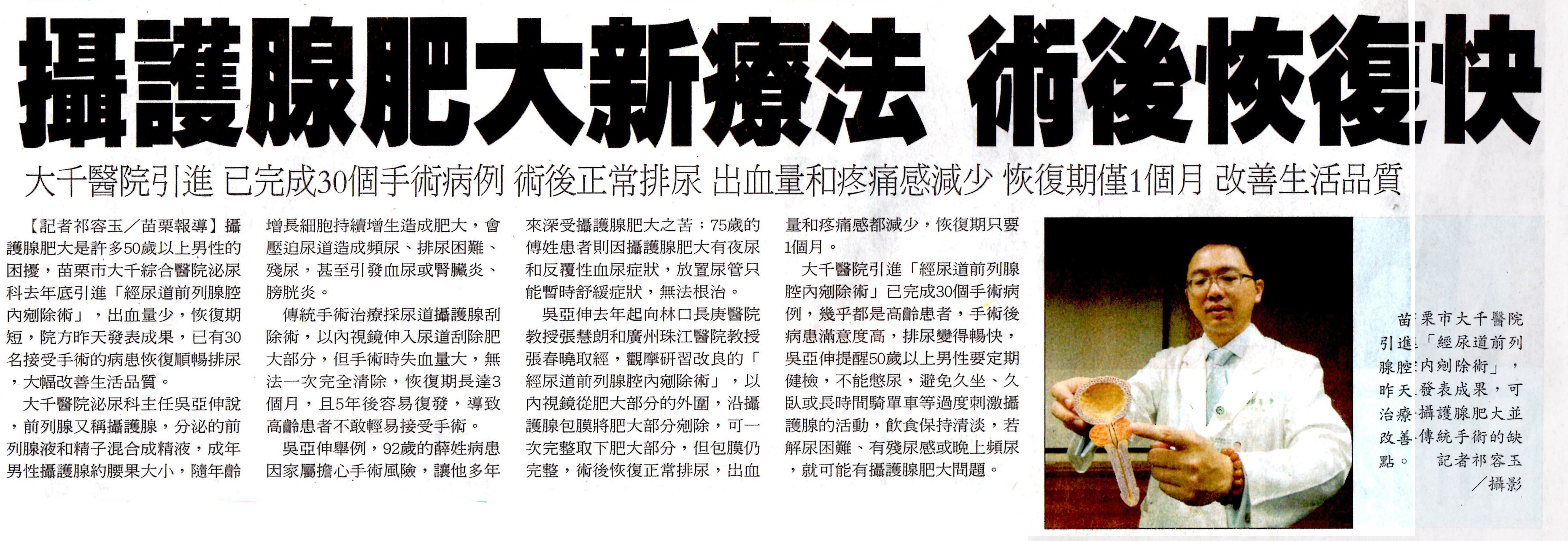 102.04.25聯合:攝護腺肥大新療法術後恢復快