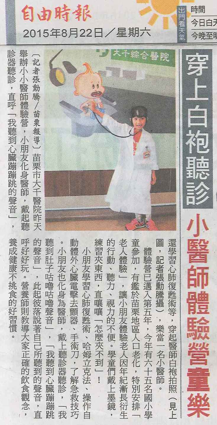 104.08.22自由:穿上白袍聽診小醫師體驗營童樂
