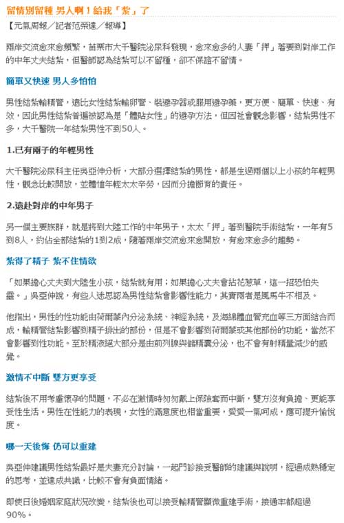 聯合新聞網:留情別留種 男人啊!給我「紮」了(泌尿科吳亞伸)