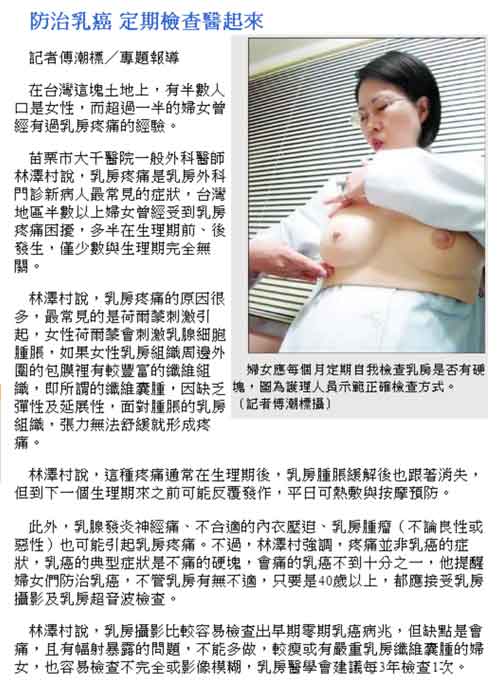 自由電子報:防治乳癌 定期檢查醫起來(外科林澤村)