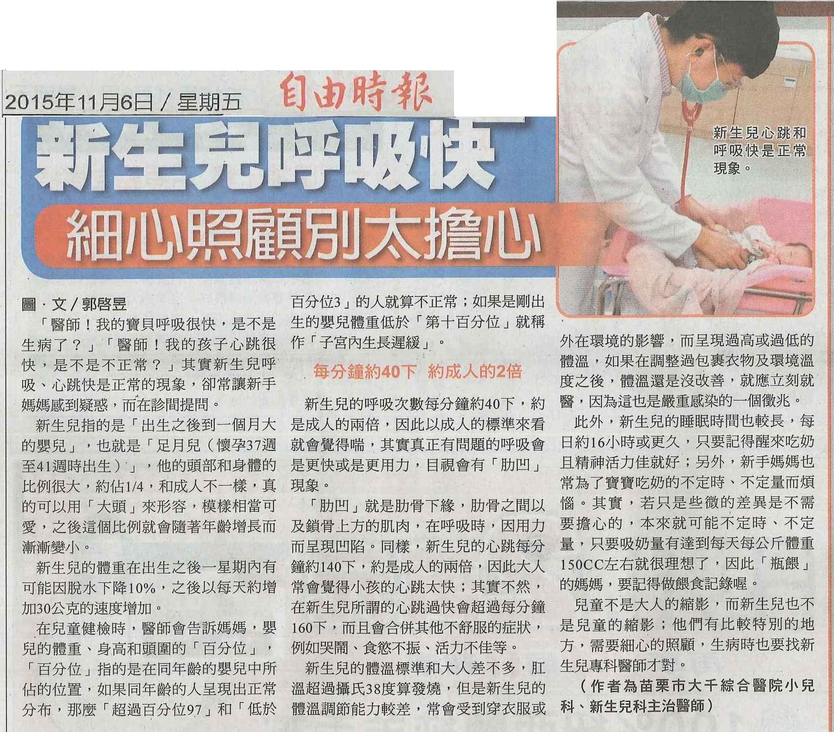 104.11.06自由:新生兒呼吸快細心照顧別太擔心