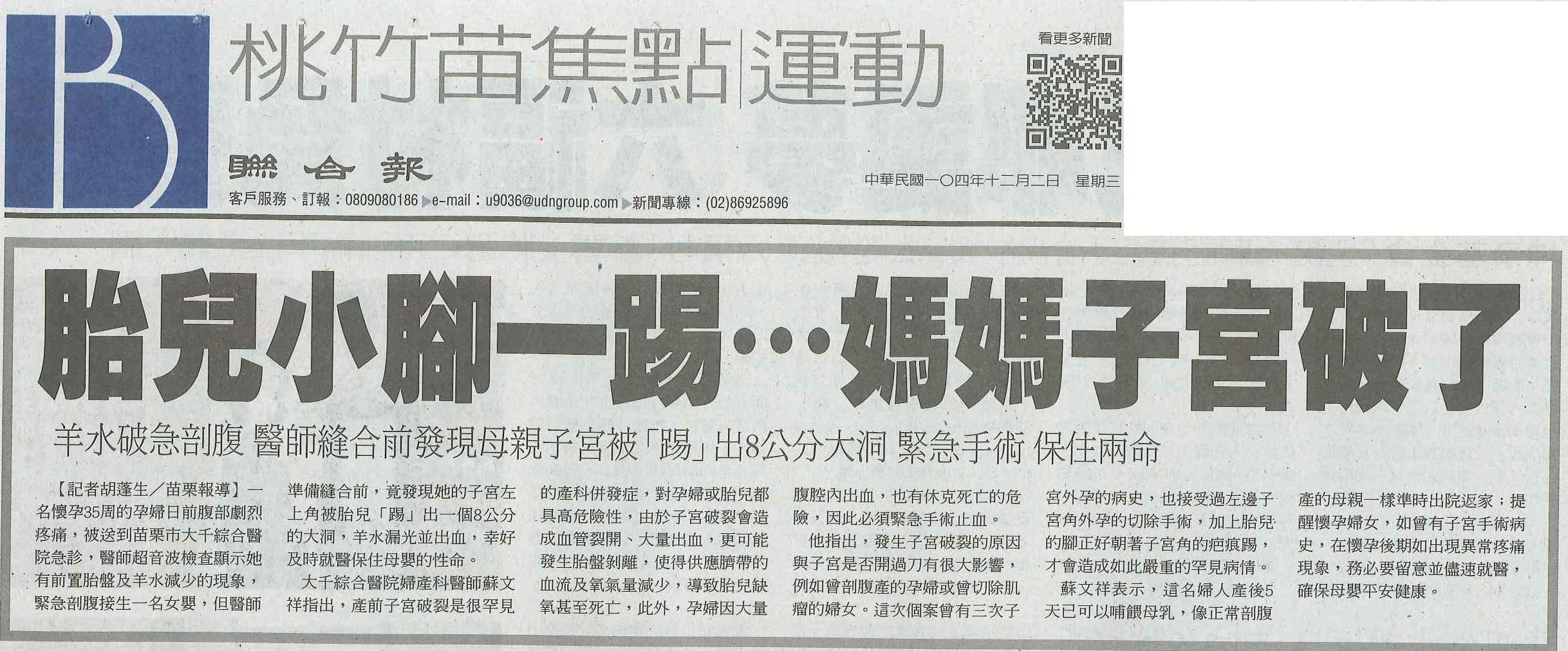 104.12.02聯合:胎兒小腳一踢媽媽子宮破了