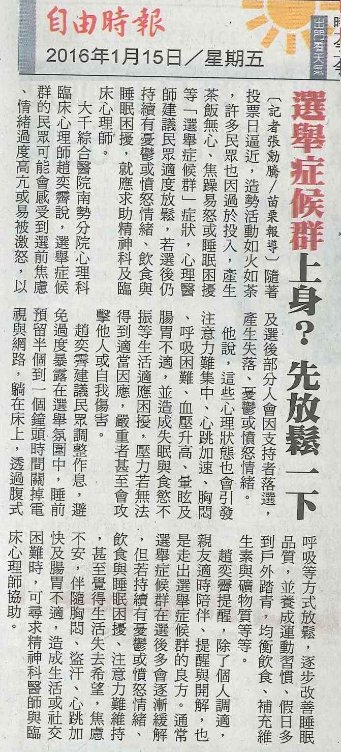 105.01.15自由:選舉症候群上身?先放鬆一下
