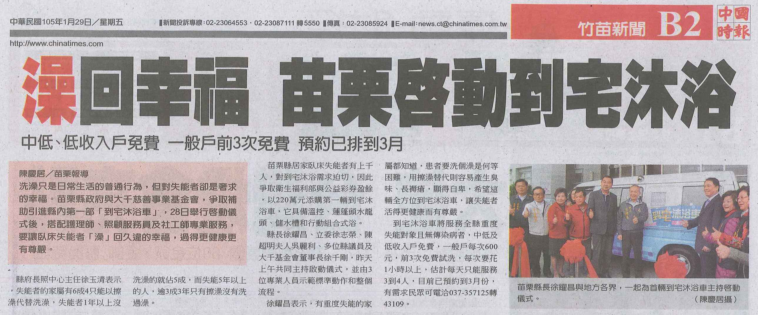 105.01.29中時:澡回幸福苗栗啟動到宅沐浴