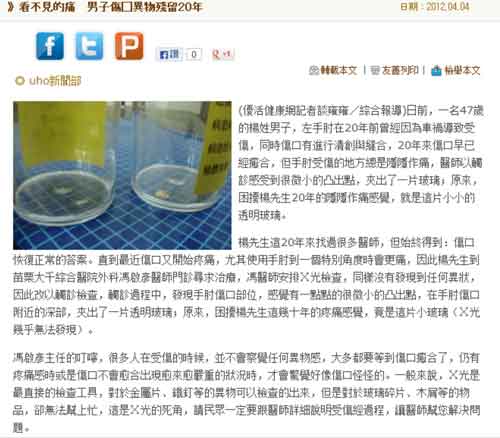 uho優活健康網:看不見的痛 男子傷口異物殘留20年(外科馮啟彥)
