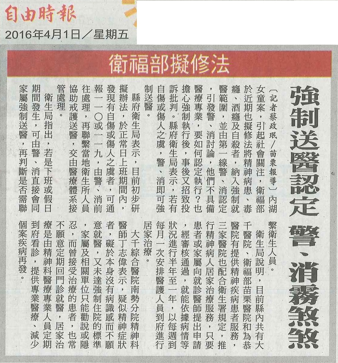 105.04.01自由:強制送醫認定警、消霧煞煞