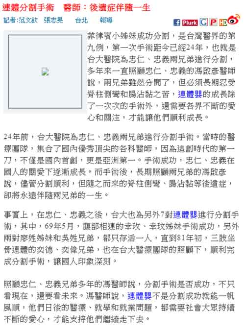 TVBS:連體分割手術 醫師:後遺症伴隨一生(外科馮啟彥)
