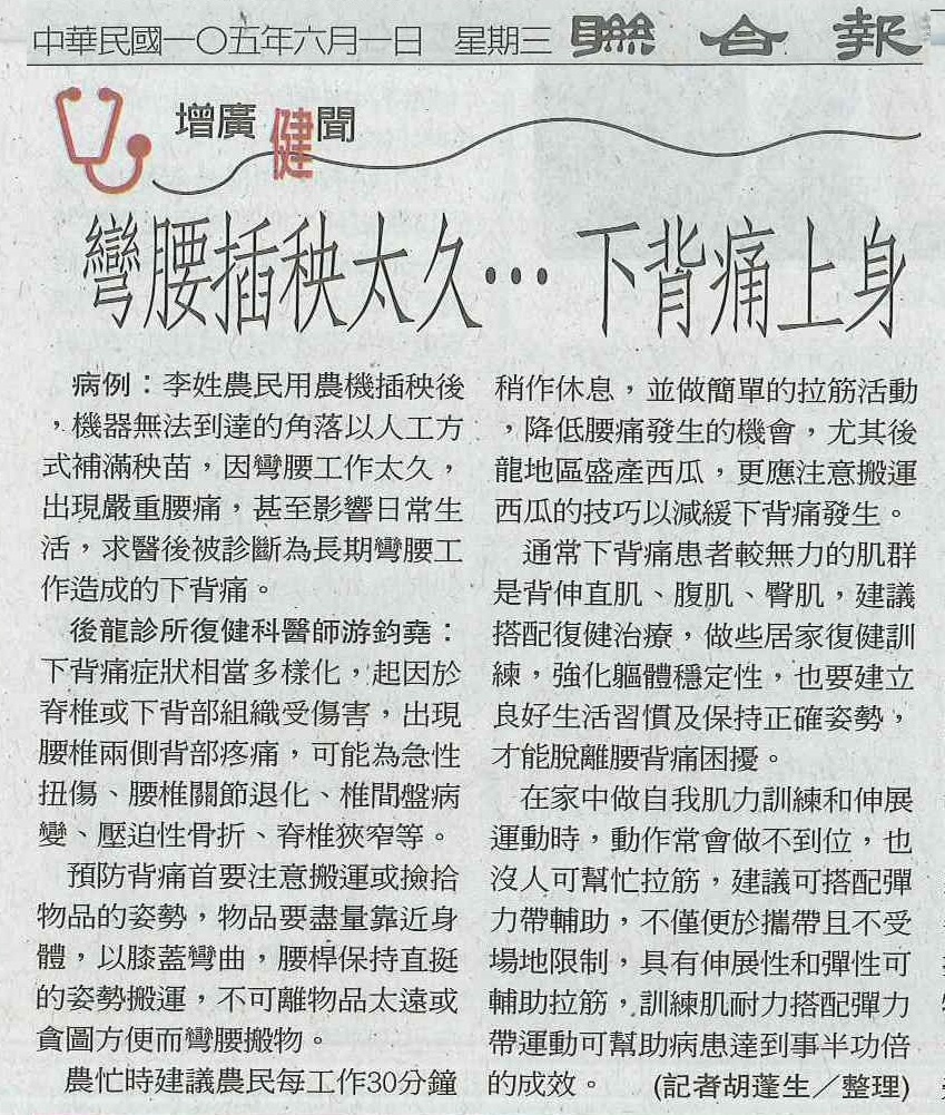 105.06.01聯合:彎腰插秧太久下背痛上身
