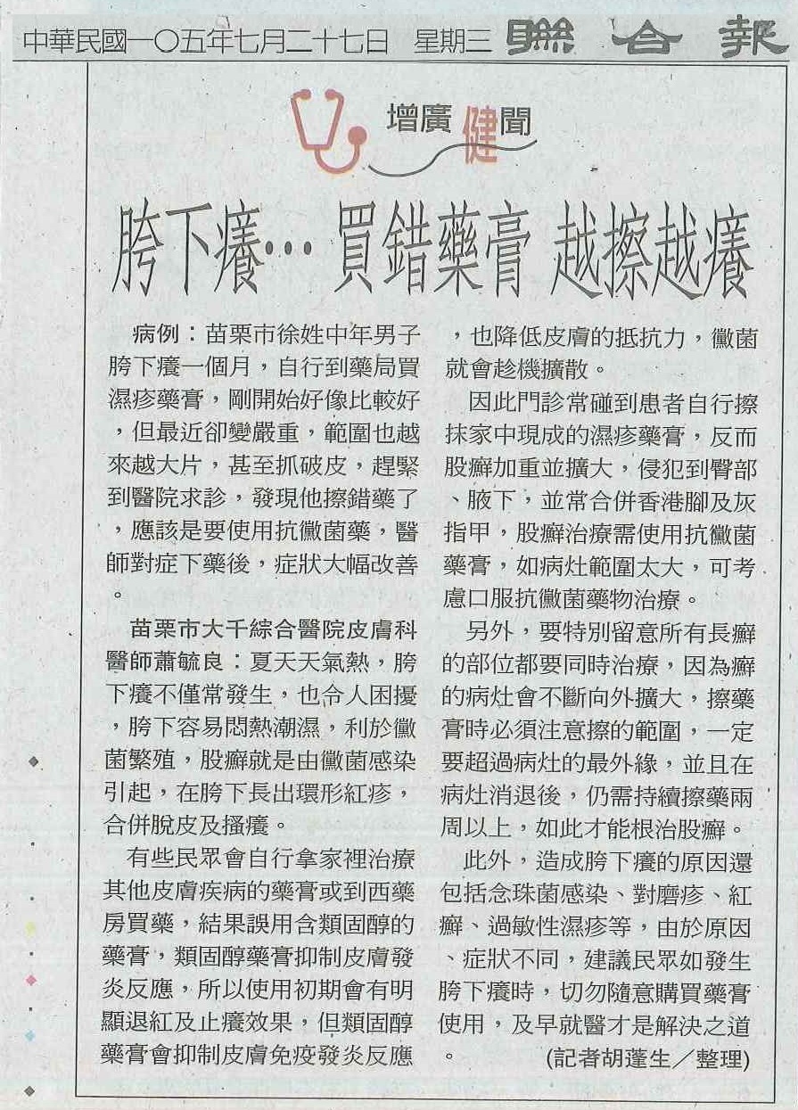 105.07.27聯合:胯下癢買錯藥膏越擦越癢