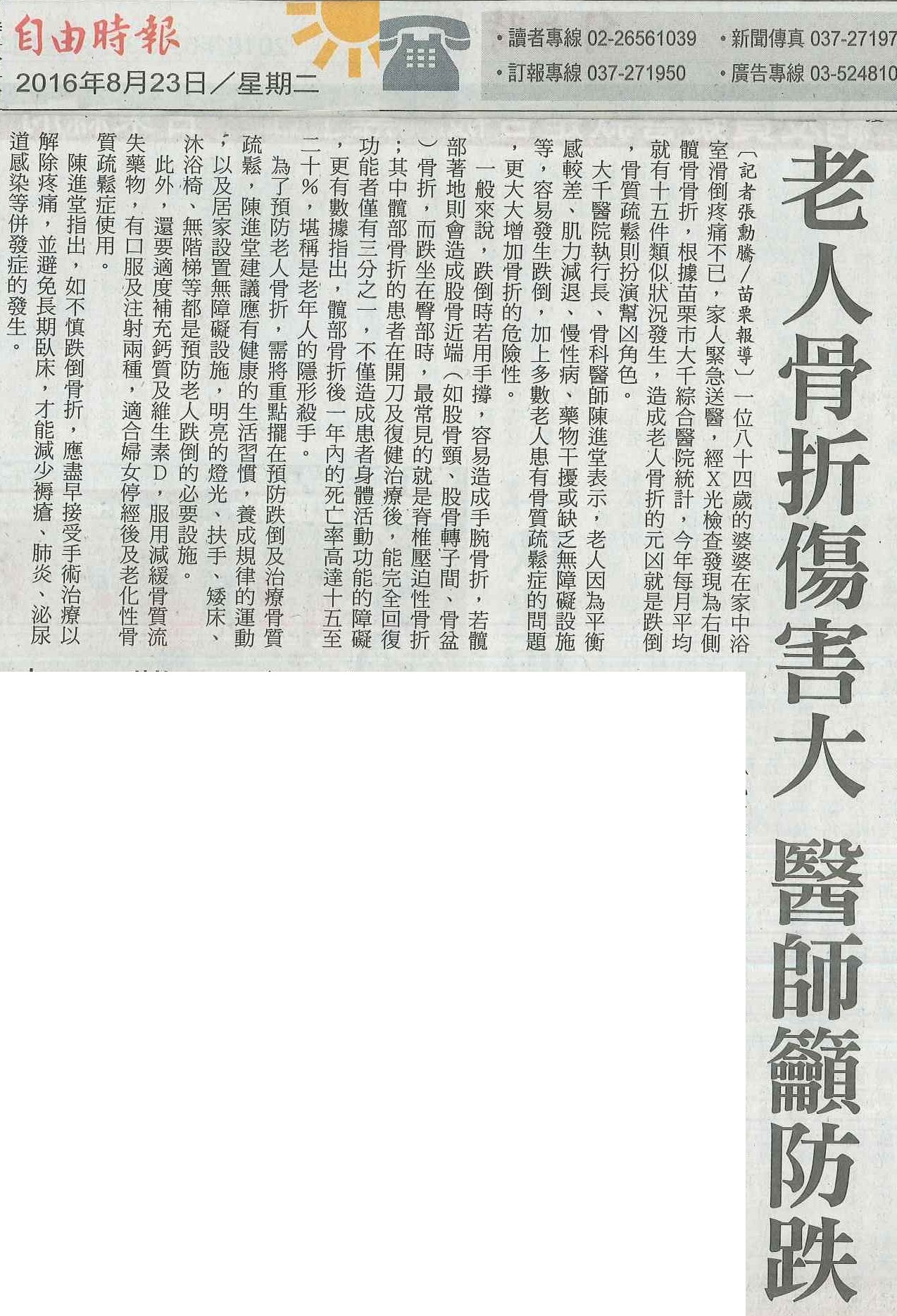105.08.23台灣新生報:老人骨折傷害大揪出兇手就不怕