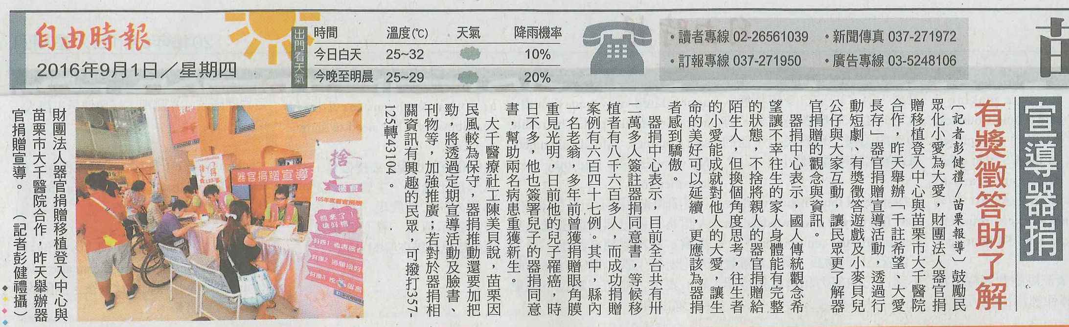 105.09.01自由:宣導器捐有獎徵答助了解
