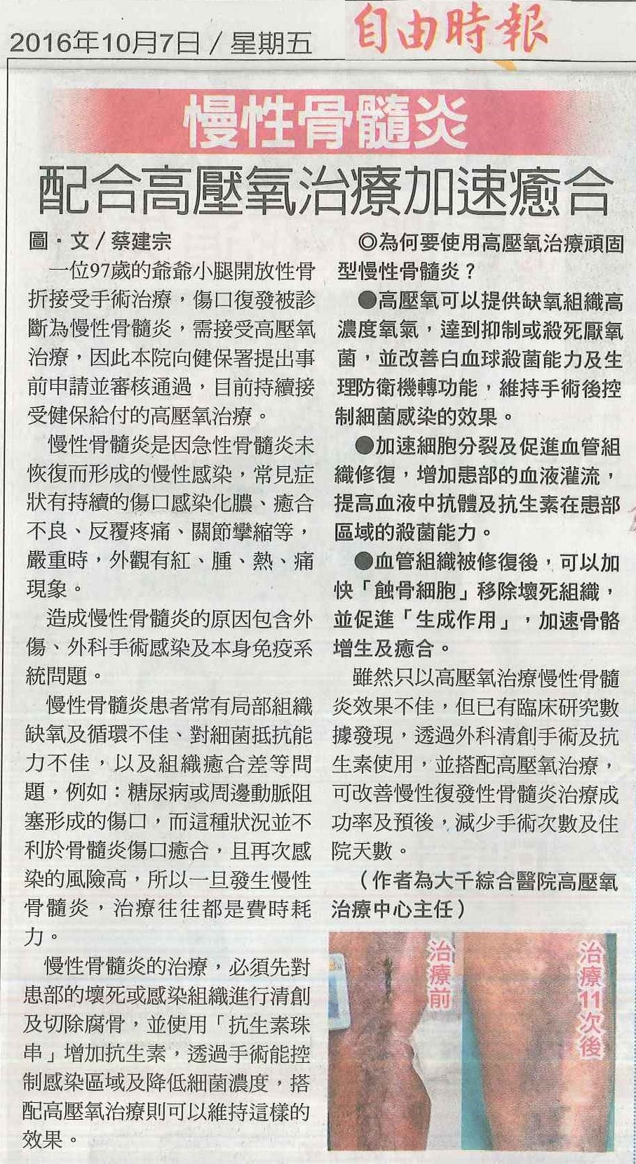 105.10.07自由:慢性骨髓炎配合高壓氧治療加速癒合