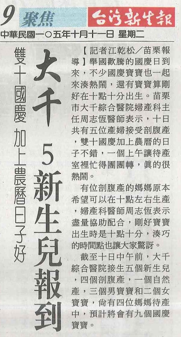 大千綜合醫院附設苗栗縣私立托嬰中心