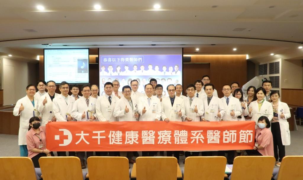 11月12日適逢醫師節,大千健康醫療體系特辦理醫師節頒獎活動,分別表揚最佳教學貢獻獎、最佳研究發表獎、最佳醫療人氣獎、最佳社區服務獎、最佳預防保健獎等多項獎項,感謝醫師們在醫療的貢獻及平日的辛勞與付出,盡心盡力守護民眾的健康。