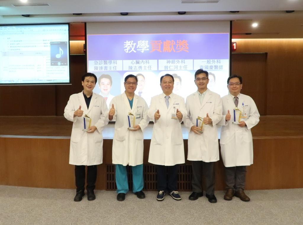 急診醫學部陳連書主任(左一)擔任各項緊急醫療指導醫師,榮獲最佳教學貢獻獎。